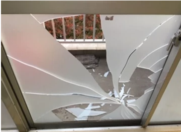掃き出し窓のガラスが鋭利に割れたので、至急修理ご希望のご連絡がありました。